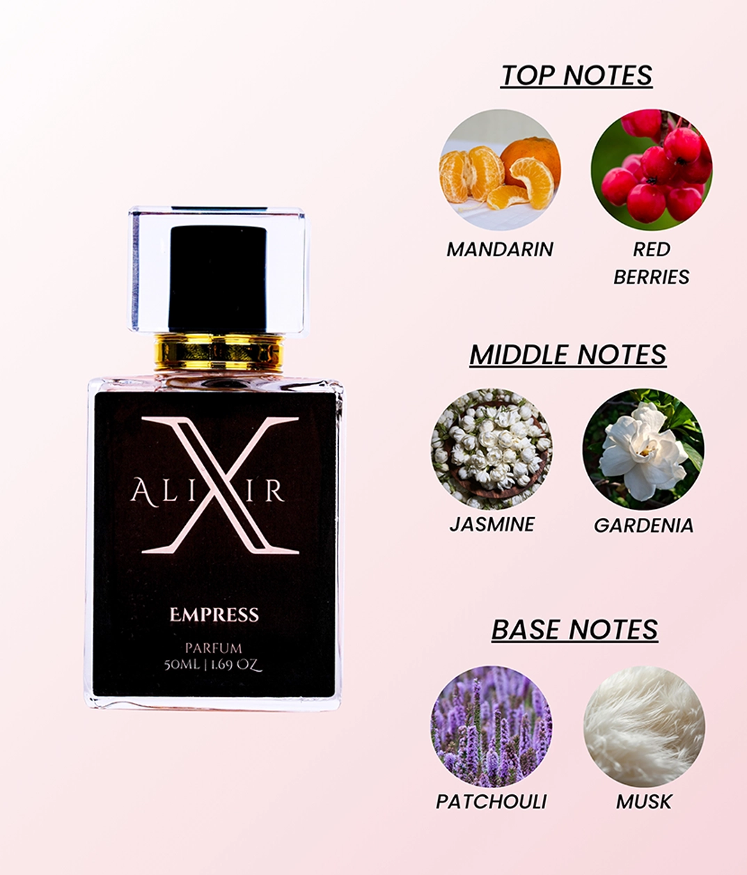 Patchouli anchors the florals with gentle depth, while musk melts into the skin, lingering softly and irresistibly close.