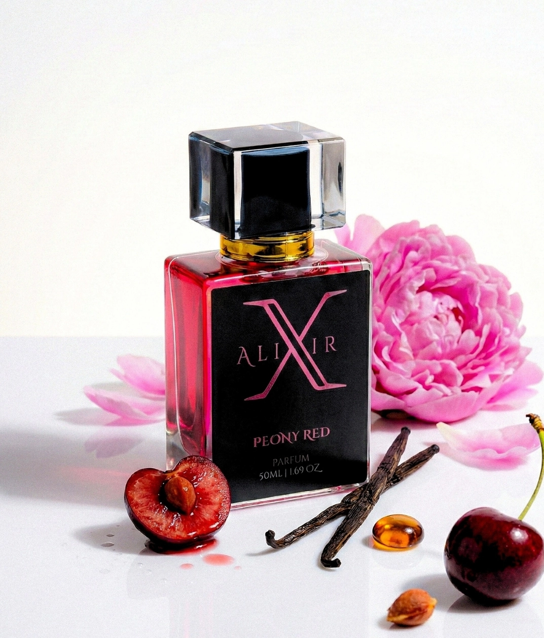 Peony blooms close to the skin, smooth and restrained, its floral warmth edged with tension—seductive without softness.